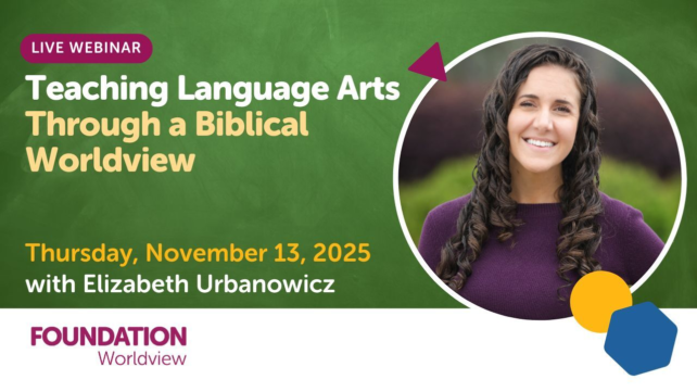 Discover how to integrate a biblical worldview into every Language Arts lesson in this online webinar with Elizabeth Urbanowicz on Thursday, November 13, 2025, at 6 p.m. CT.