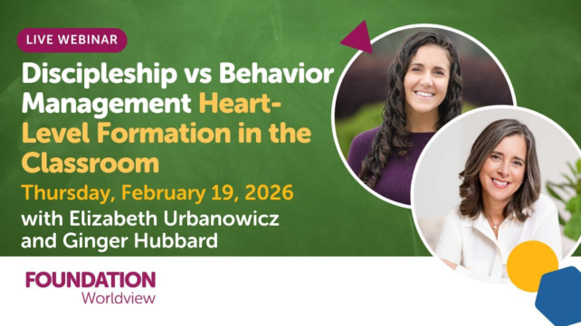 Join Elizabeth Urbanowicz, founder of Foundation Worldview, and special guest Ginger Hubbard, author of Don’t Make Me Count to Three, for a conversation on how to implement biblical discipline that disciples the heart, not just the behavior.